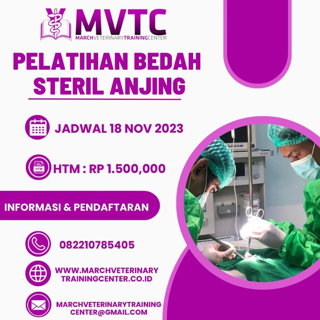 PELATIHAN BEDAH STERIL ANJING Kuota Terbatas 4 orang ️ Jadwal Acara : 18 November 2023 ⏰ Waktu : 10.00 – selesai Registration Fee : Rp. 1.500.000 Fasilitas * Training 1 hewan per peserta * Trainer berpengalaman * Free Makan siang …